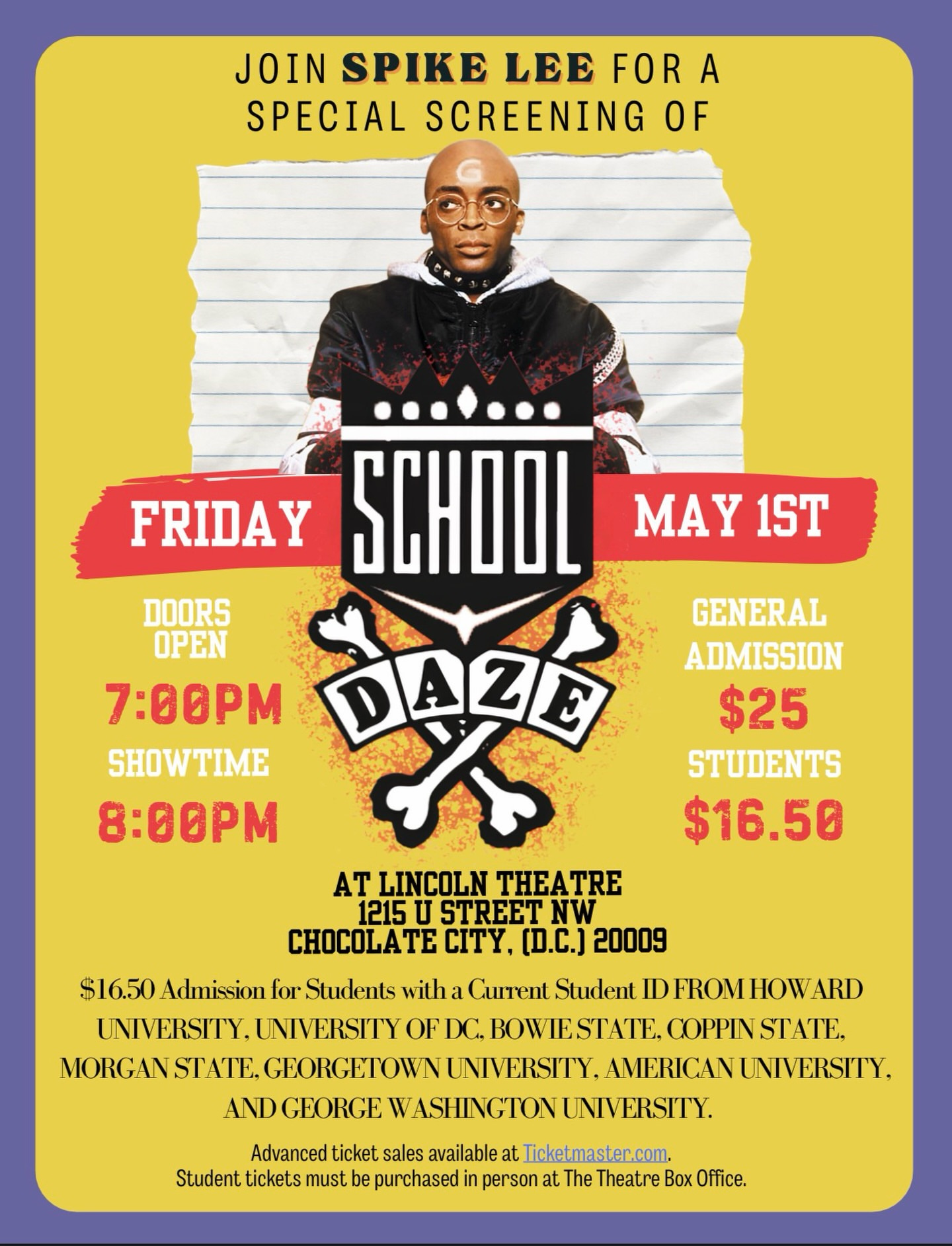 Academy Award–winning director Spike Lee is bringing HBCU pride to Chocolate City on May 1 with a special screening of his classic film ‘School Daze’ at the historic Lincoln Theatre.